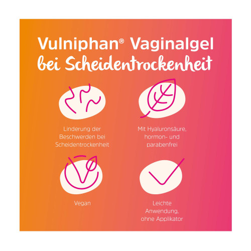 Verwende Vulniphan® Produkte zur Linderung von Scheidentrockenheit: Das Vulniphan® Vaginalgel ist ein befeuchtendes Gel mit Hyaluronsäure und Milchsäure zur akuten Linderung bei Symptomen einer Scheidentrockenheit.