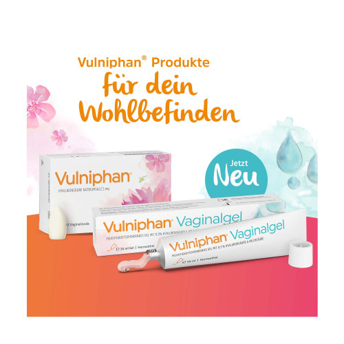 Vulniphan® Vaginalovula (PZN 02727841) sind pflegende Ovula mit Hyaluronsäure und pflegenden Inhaltsstoffen zur Förderung der Regeneration und Wundheilung der Vaginalschleimhaut.