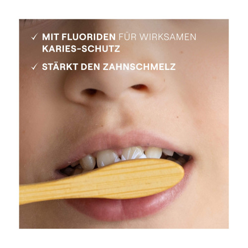 Zur Vermeidung übermässigen Verschluckens Zähneputzen nur unter Aufsicht. Bei zusätzlicher Aufnahme von Fluorid den Zahnarzt oder Arzt befragen.