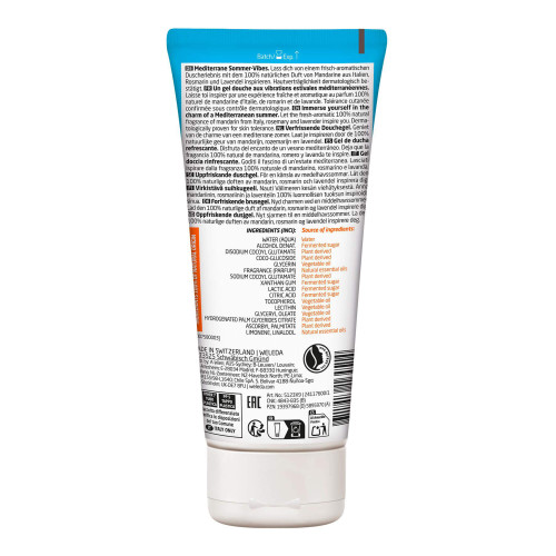 Hol dir den Duft des Sommers ins Badezimmer – für deinen ganz persönlichen Me-Moment des Tages! Im warmen Wasserdampf der Dusche entfaltet der aromatische Duft des Duschgels seine volle Wirkung. Essenzen von roter Mandarine, Lavendel und Rosmarin umgeben dich sanft und nehmen dich mit auf eine Sinnesreise ans Mittelmeer. Das leichte Gel reinigt deine Haut gründlich, ohne sie dabei auszutrocknen.