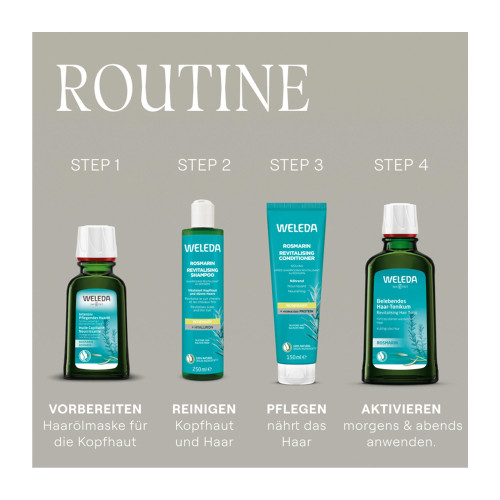- Vitalisiert Kopfhaut und Haare mit Rosmarin.