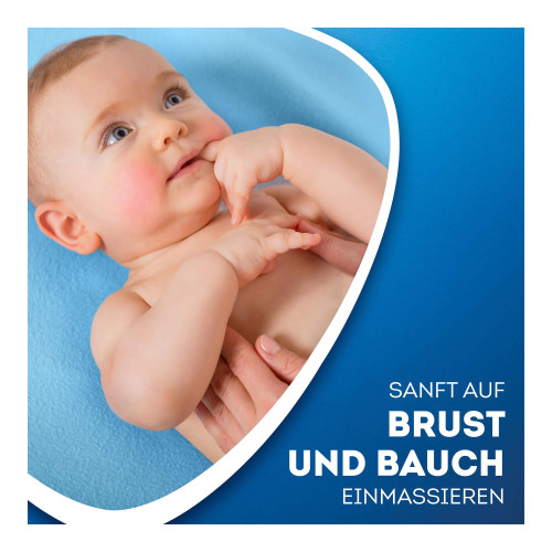 - Wick Baby Balsam wird sanft auf Brust und Bauch des Babys einmassiert.