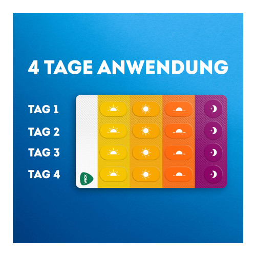 Wick DayNait Filmtabletten. Anwendungsgebiete: WICK DayNait wird eingenommen zur kurzzeitigen symptomatischen Behandlung bei Verstopfung der Nase und der Nebenhöhlen, die mit Erkältungs- und grippeartigen Symptomen einhergeht, wie Kopf- und Gliederschmerzen und/oder Fieber, und nur in Kombination mit Schmerzsymptomen zur Schlafenszeit, die das Einschlafen erschweren. Ab 15 Jahren. Warnhinweise: Arzneimittel für Kinder unzugänglich aufbewahren. Ohne ärztlichen Rat nicht länger anwenden als in der Packungsbeilage vorgegeben!