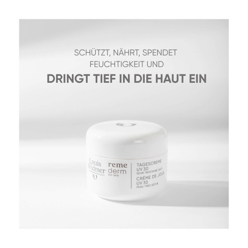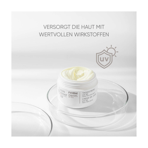 Die remederm Tagescreme UV 30 wird morgens auf die gereinigte Haut aufgetragen. Augenpartie aussparen.