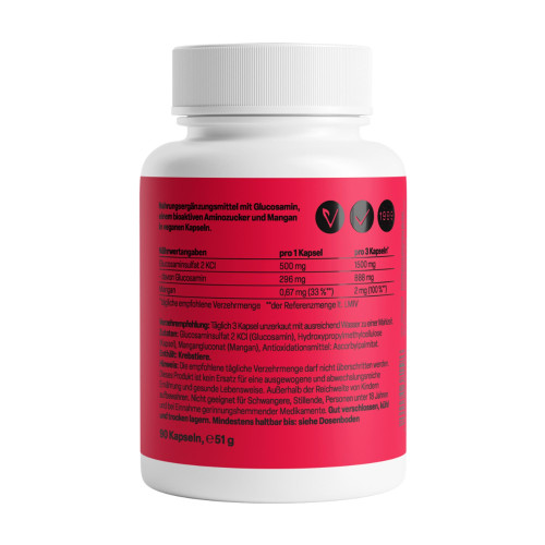 Mit Glucosamin, einem natürlich vorkommenden Aminozucker, und dem Spurenelement Mangan in Kapseln.