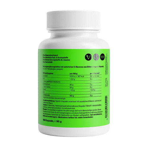 Mit D-Mannose aus Birke in veganen Kapseln.