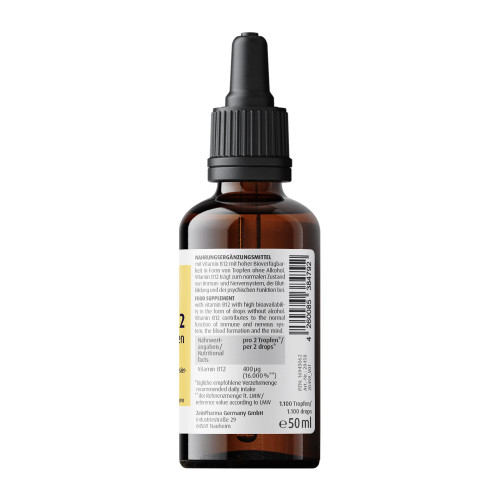 Mit Vitamin B12 mit hoher Bioverfügbarkeit in Form von Tropfen ohne Alkohol.