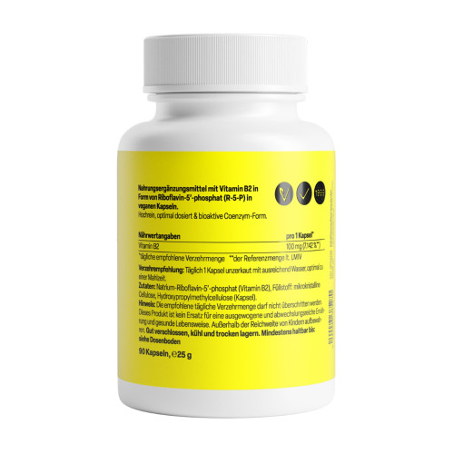 - Hochwertige Inhaltsstoffe: Unsere Vitamin B2 100 mg (R5P) Kapseln mit dem hochwertigen Inhaltsstoff in seiner bioaktiven Coenzym-Form enthalten nur 100% reine Zutaten