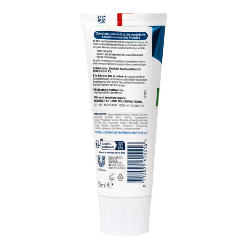 Dank der SLS-freien Rezeptur verzichtet Zendium auf aggressive Schaumbildner und ist dadurch besonders sanft zur Mundschleimhaut &nash; ideal auch bei empfindlichem Zahnfleisch. Enthaltenes Natriumfluorid (1.450 ppm) trägt zum Schutz des Zahnschmelzes bei, während das milde Aroma für ein angenehmes Frischegefühl sorgt.