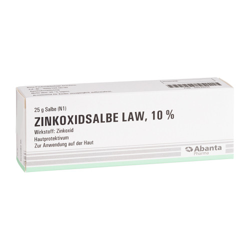 Zinkoxidsalbe LAW, 10 %. Anwendungsgebiete: wirkt abdeckend-protektiv und sekretbindend bei akuten und subakuten Dermatosen.